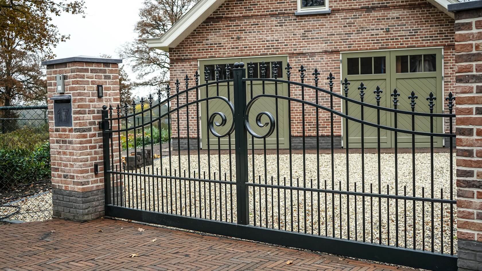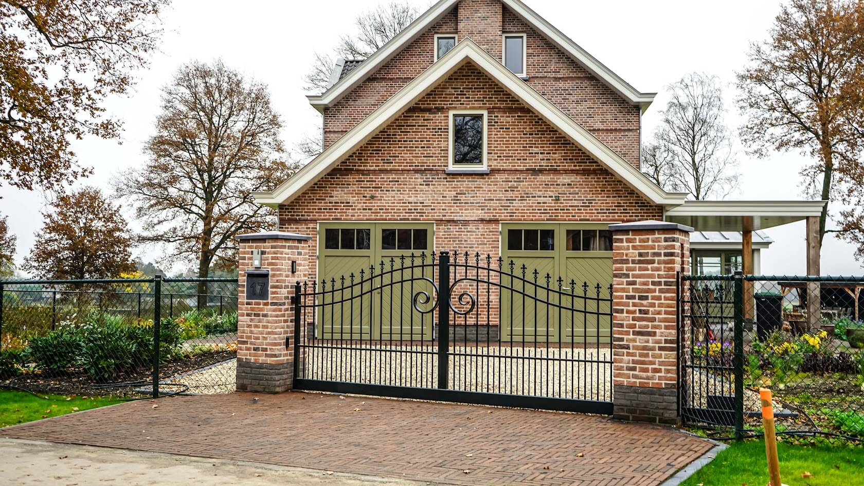 De Ornamenti is een klassieke dubbele draaipoort met sierlijke krullen en een uitstraling die doet denken aan traditioneel smeedijzeren hekwerk. De sierpunten zijn variabel in te vullen, waardoor de poort volledig naar wens is samen te stellen. De elegante toog en decoratieve details geven deze landelijke sierpoort een verfijnd karakter. In combinatie met de gemetselde kolommen ontstaat een statige entree die perfect past bij een klassieke woning of erf.