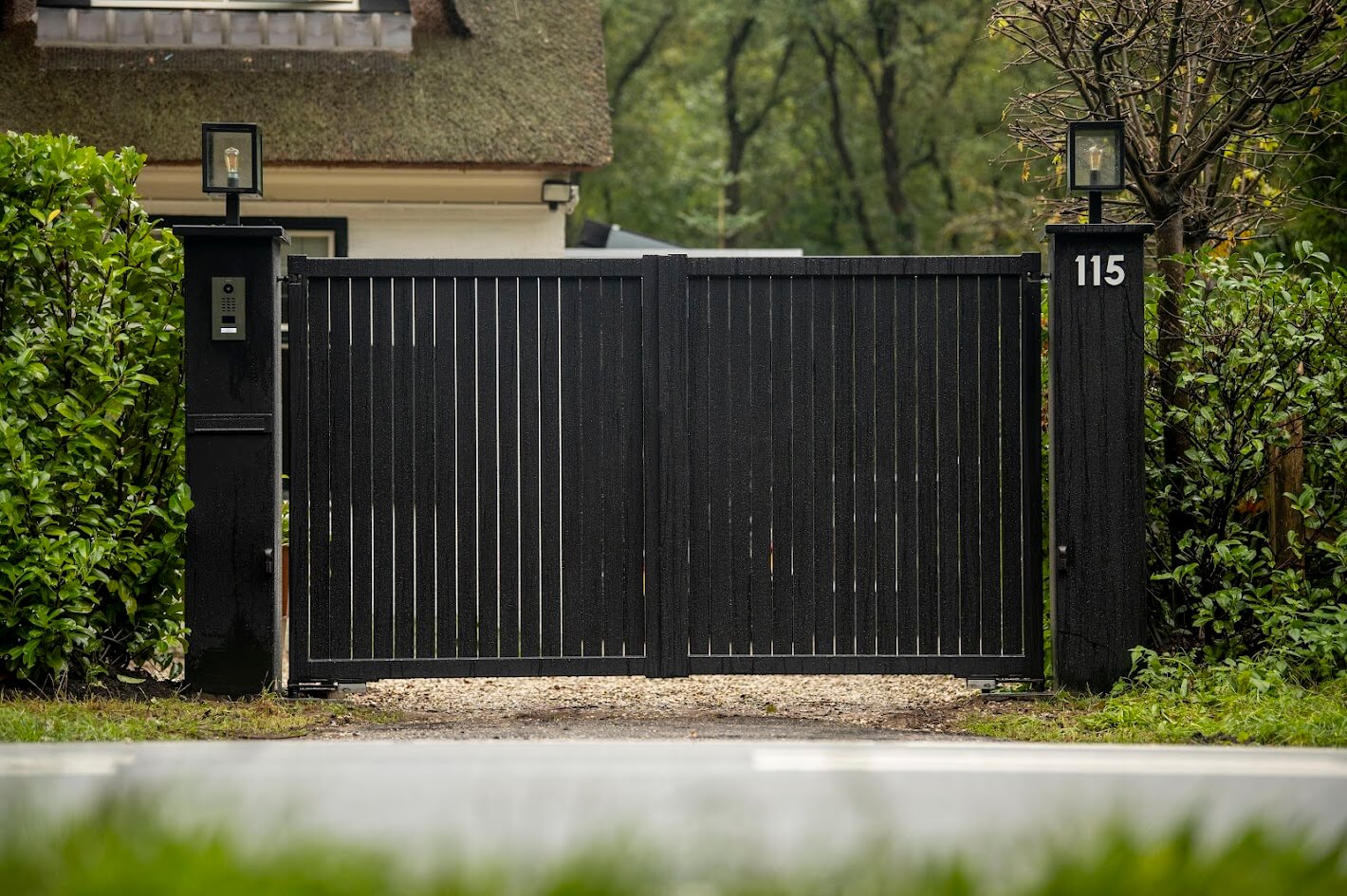 De Florence is een moderne dubbele draaipoort met een strakke houtlook vulling tussen ranke stalen kokers. Deze poort combineert het warme uiterlijk van hout met de duurzaamheid van staal, wat zorgt voor een onderhoudsarme én stijlvolle entree. De plaatstalen palen vormen een solide basis en geven de poort een moderne uitstraling. De Florence is elektrisch uitgevoerd en daarmee perfect geschikt voor dagelijks gebruik op de oprit, met comfort en uitstraling in één.