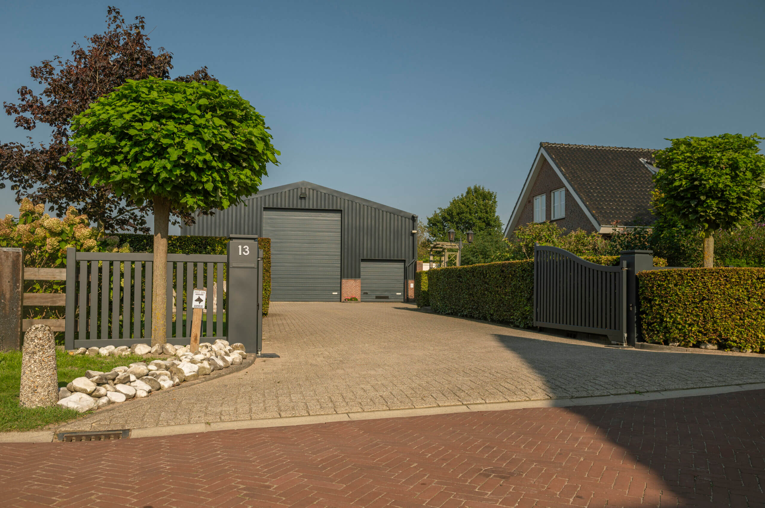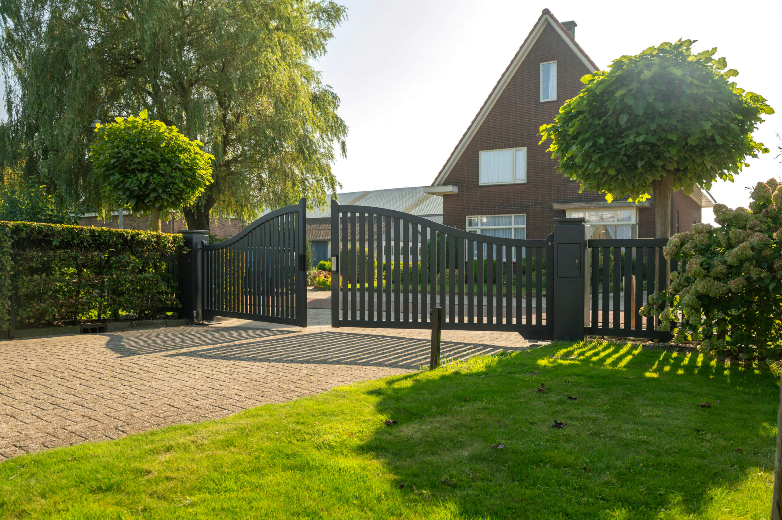 Voor extra comfort en gebruiksgemak hebben we gekozen voor een Beninca ondergrondse aandrijving, die zorgt voor een stille, vloeiende en betrouwbare elektrische bediening. Deze aandrijving maakt het mogelijk de poort automatisch te openen en te sluiten.. Daarnaast is de poort uitgerust met verstelbare scharnieren, waardoor de vleugels van de poort nauwkeurig kunnen worden afgesteld voor een perfecte uitlijning. De aanslagflens en de stevige Locinox magneet zorgen voor een stabiele vergrendeling, zodat de poort veilig gesloten blijft. Deze combinatie van hoogwaardige techniek en tijdloze vormgeving maakt de poort niet alleen veilig, maar ook gebruiksvriendelijk, wat het dagelijks gemak van de bewoners vergroot.