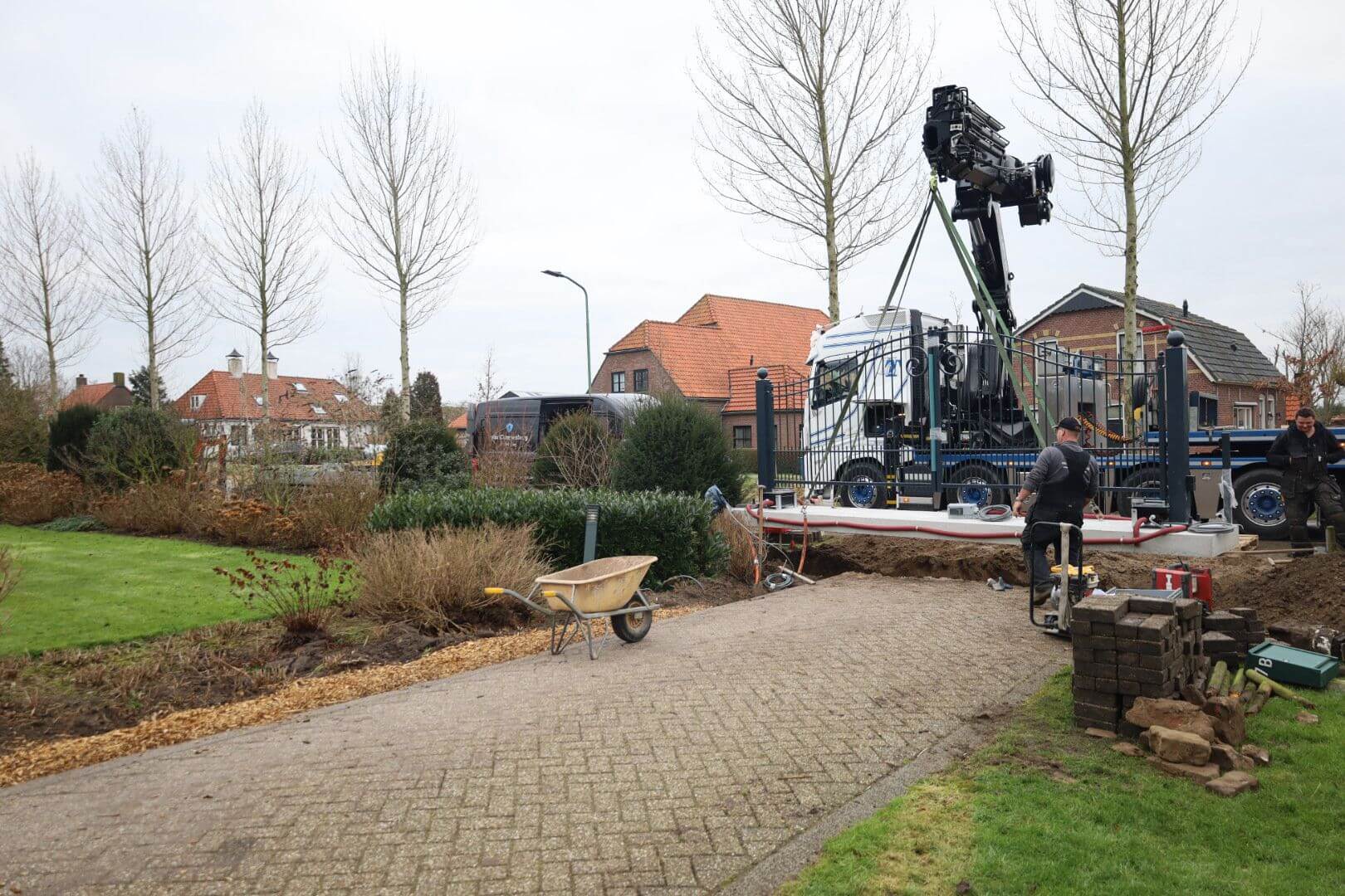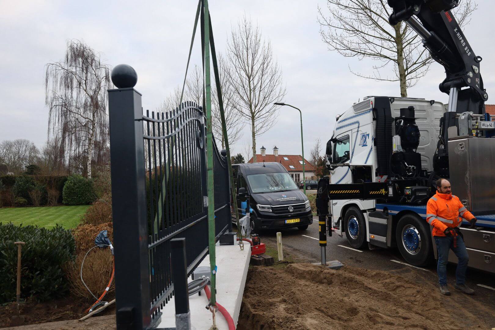 In Dussen hebben we een prachtig project mogen realiseren dat vakmanschap en maatwerk perfect combineert. De sierpoort is volledig prefab in onze werkplaats vervaardigd, met oog voor detail en kwaliteit. Alles werd met precisie voorbereid, waarna de complete poort als één geheel naar de locatie is vervoerd en daar vakkundig werd geplaatst door onze buitendienst. Dit proces, waarin voorbereiding en uitvoering naadloos op elkaar aansluiten, onderstreept hoe belangrijk het is dat we het hele proces zelf in de hand hebben door verschillende vakmannen.